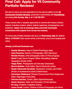 For two years, I've had the opportunity to participate in portfolio reviews with the VII Photo family. It's an extraordinary opportunity to meet young photographers from around the world.
